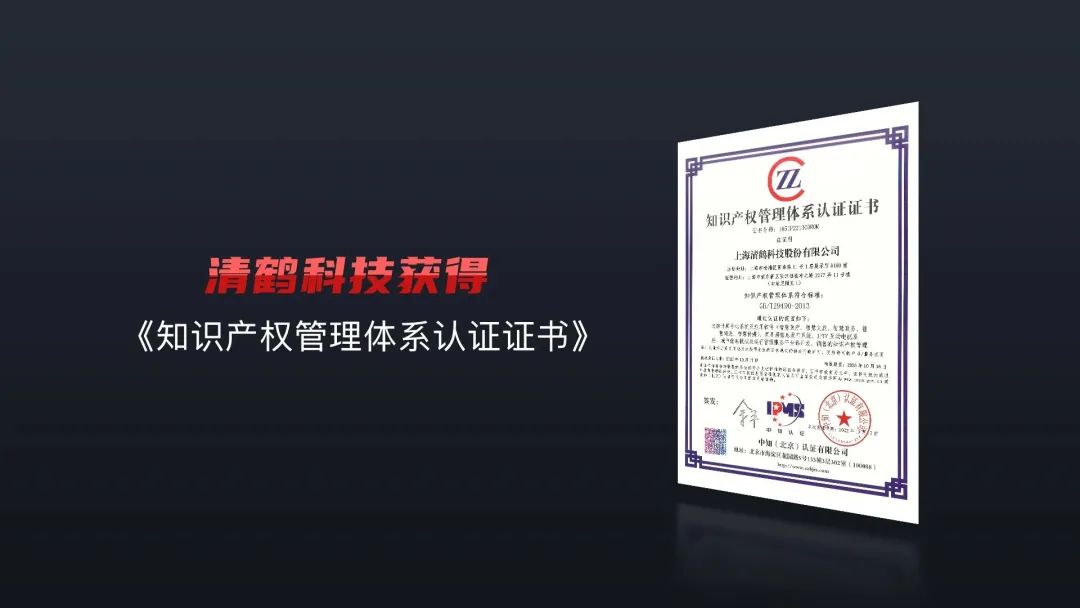 ▲清鹤获得知识产权管理体系认证证书