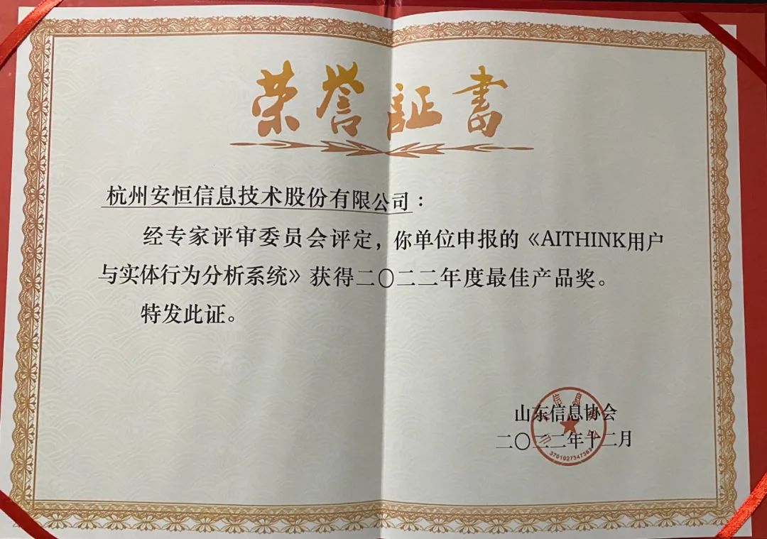 安恒信息《AiThink用户与实体行为分析系统》荣获最佳产品奖,是业内专家及用户对安恒信息在大数据智能化分析能力及客户实际业务场景理解能力的认可。