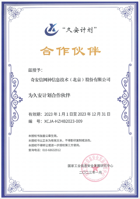 近日,由国家工业信息安全发展研究中心组织开展的信创安全能力提升行动 “久安计划”公布首批合作伙伴名单。