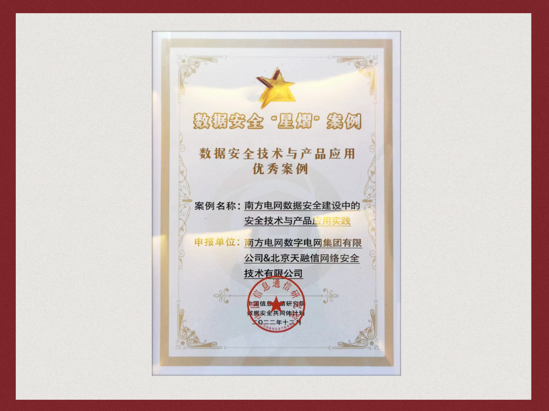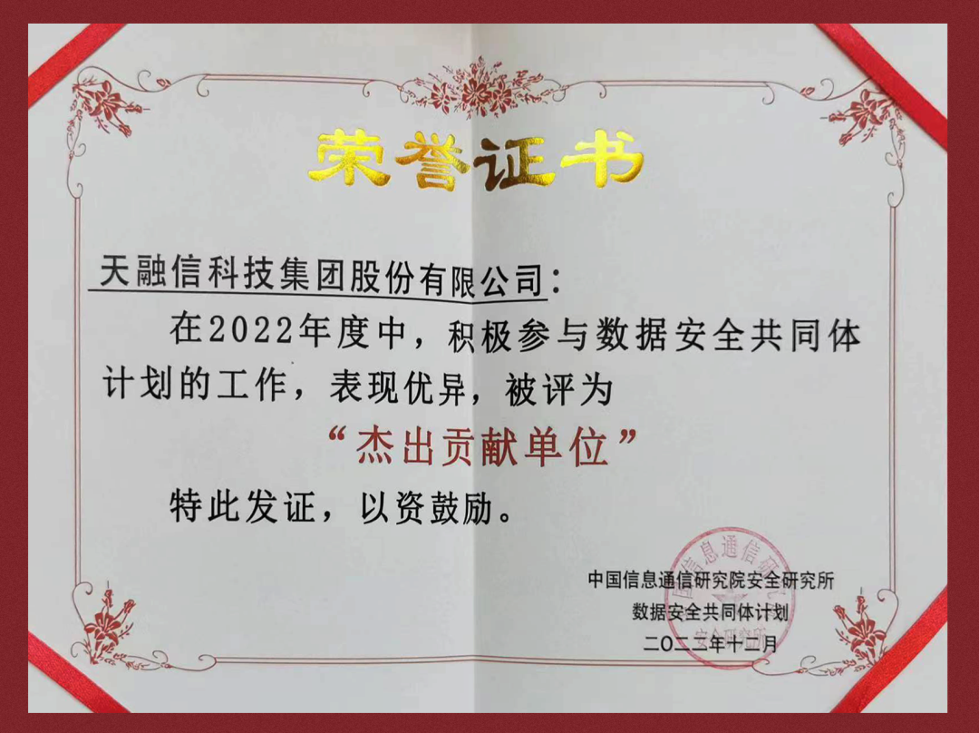 天融信充分发挥领军企业作用,积极参与推动数据安全政策、技术、人才多要素良性互动,被授予“杰出贡献单位”称号。