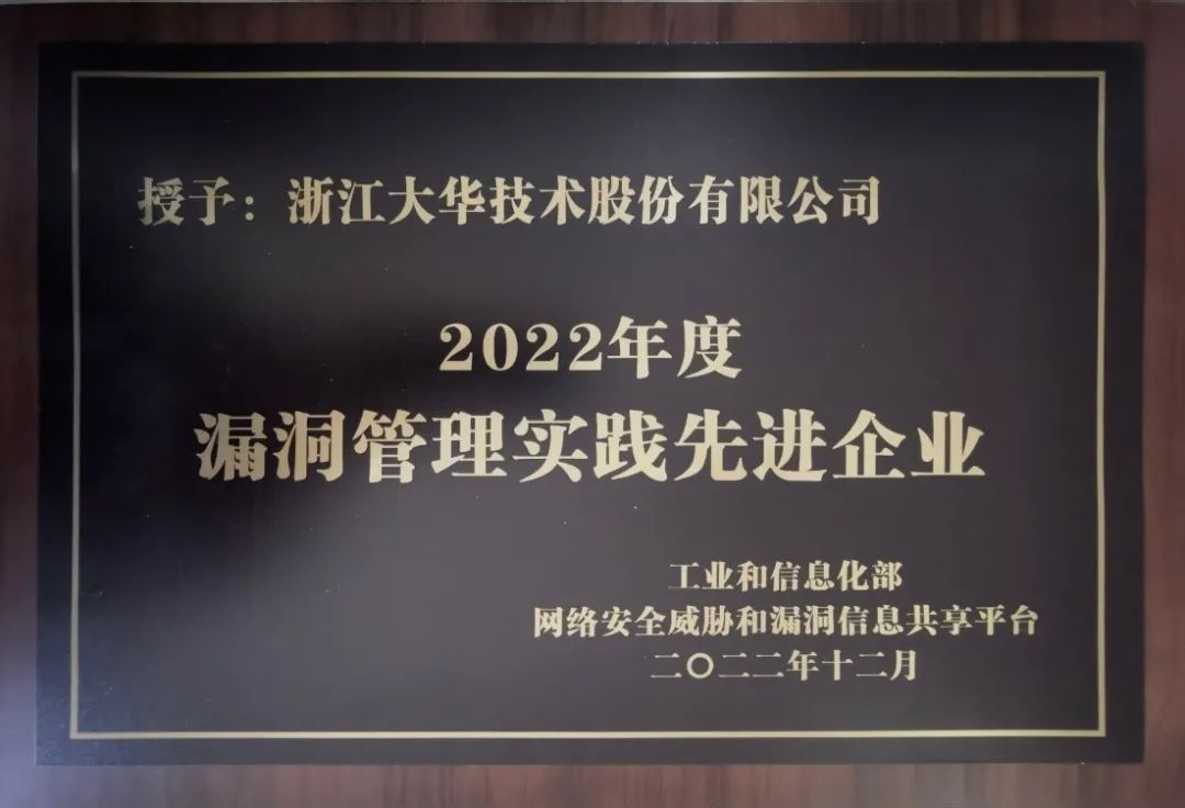 近日,由工业和信息化部、四川省人民政府主办,以“新征程 新思路 高质量发展”为主题的2023年中国网络和数据安全产业高峰论坛在成都举行,旨在强化网络和数据安全保障体系建设,进一步推动网络和数据安全产业创新发展。凭借在漏洞管理领域的突出表现,大华股份被授予“2022年度漏洞管理实践先进企业”称号。