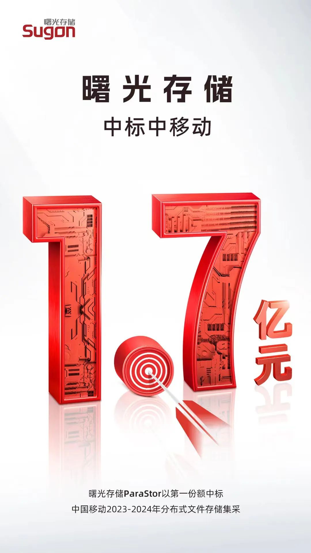 近日,曙光存储ParaStor以总额1.7亿元,容量型和性能型两个标段双双第一份额的成绩,中标中国移动2023年至2024年分布式文件存储集中采购项目!这已是2023年第二次中标中移动集采,就在一个月前的中移动分布式块存储集采中,曙光存储XStor也摘得了1亿的份额。