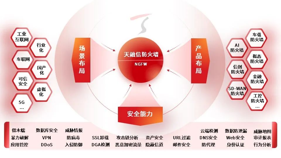 面对不同行业多种场景的业务需求,天融信防火墙产品率先实现了全场景的布局和落地,不仅拥有面向政企行业的通用防火墙,还面向商密、金融等特殊行业业务需求推出了行业专用的防火墙产品系列。