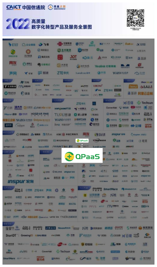 会上隆重发布了《高质量数字化转型产品及服务全景图(2022)》,360政企数字化低代码平台QPaaS凭借产品在政企数字化转型的先进实践经验入选图谱。