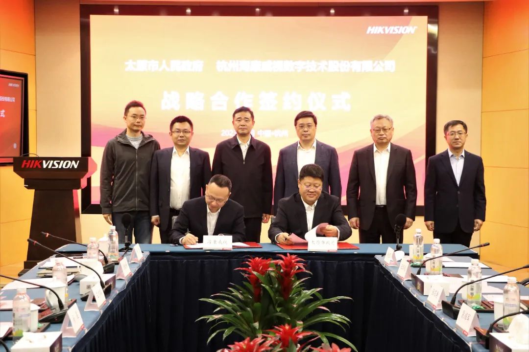 近日,太原市人民政府与海康威视签订战略合作协议。山西省委常委、太原市委书记韦韬,太原市领导卢秋生、裴耀军、李永强,海康威视董事长陈宗年、海康威视高级副总裁郭旭东、海康威视山西业务中心总裁唐佳峰等出席签约仪式。