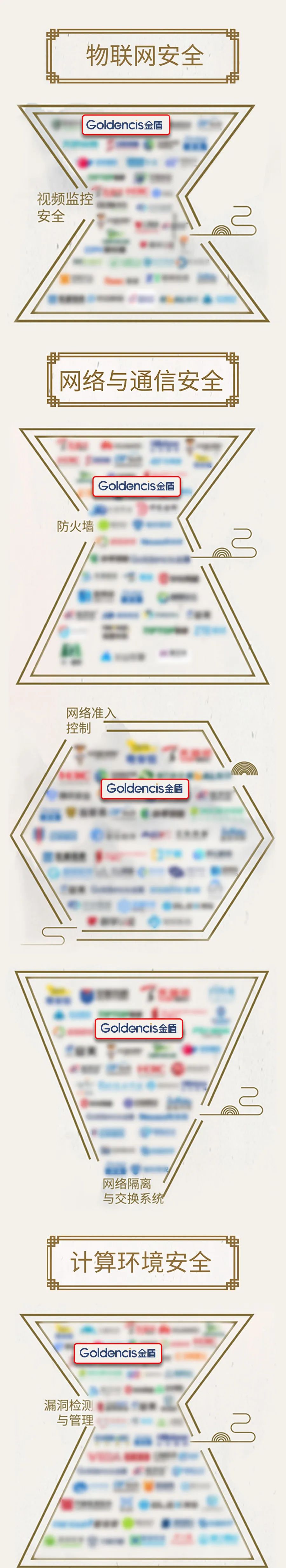 日前,国内网络安全权威机构安全牛正式发布《网络安全行业全景图(第十版)》。金盾软件凭借行业领先的技术优势,入围全景图8大类一级安全领域榜单,共涉及视频监控安全、攻防演练、漏洞检测与管理、网络准入控制、防火墙等11个细分领域。