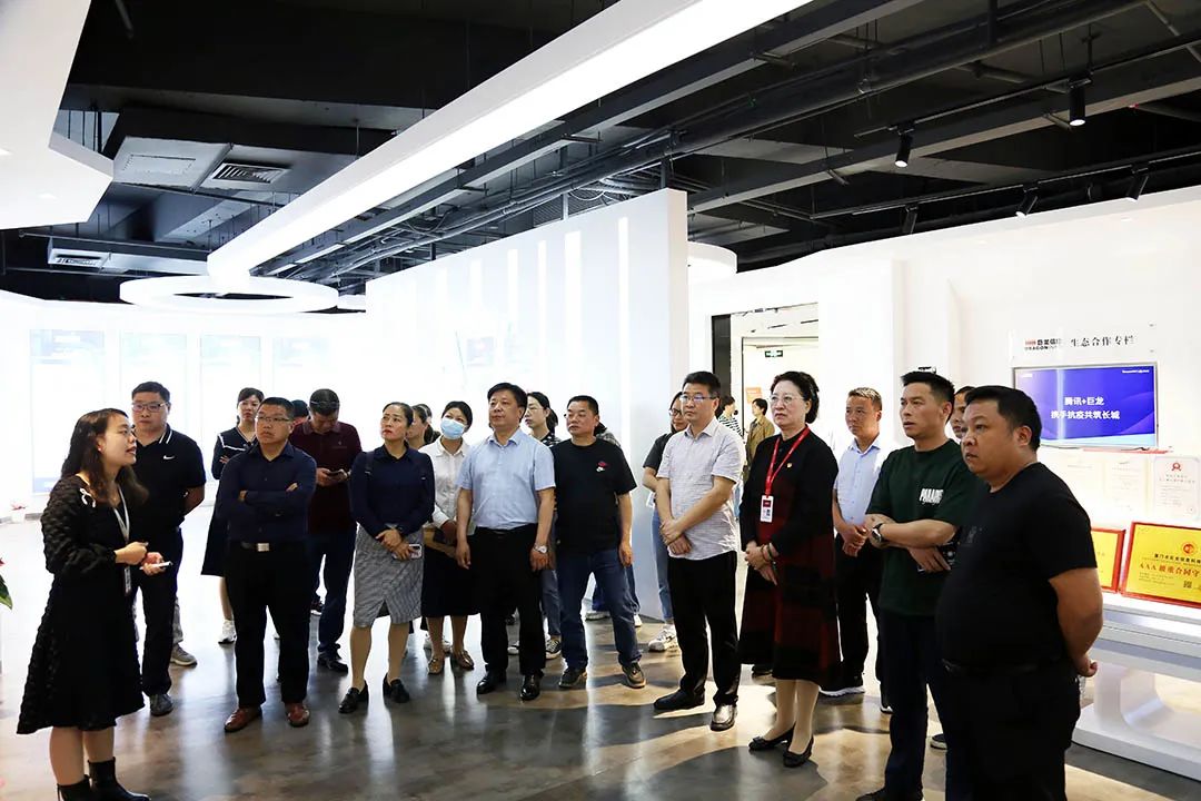 近日,湖南益阳市安化县政协培训班一行40余人莅临巨龙信息参观交流,公司党总支部书记、副总裁张敏玲热情接待。