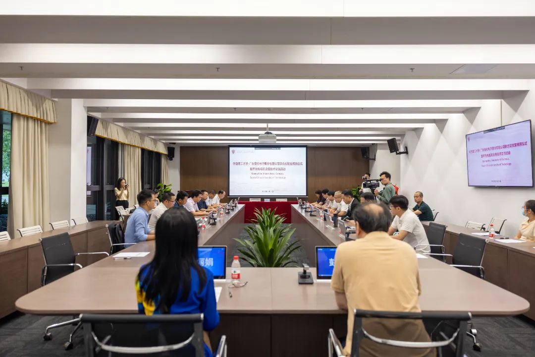 华南理工大学副校长、未来技术学院院长徐向民,华南理工大学科研院副院长江海,未来技术学院副院长舒琳,广东省电子学会秘书长彭志聪,广东省产学研合作促进会秘书长康丽娟,广东保伦电子股份有限公司总裁赵定金、运营副总裁阮胜林,广东聚智诚科技有限公司总经理邓韵霖等出席并见证签约及揭牌。本次签约仪式由舒琳主持。