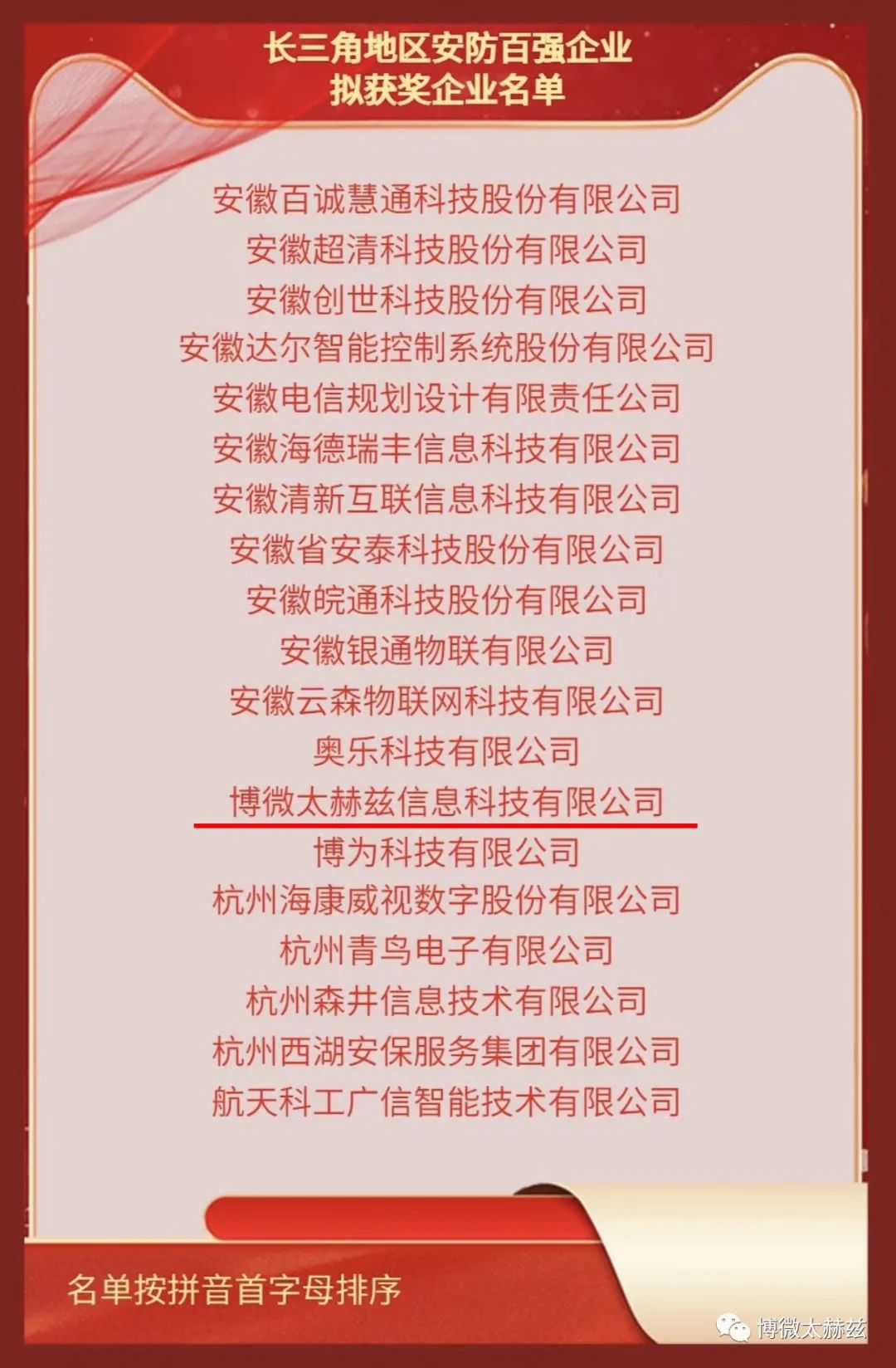 5月6日,第二十届上海国际公共安全产品博览会组委会发布了“长三角地区安防百强企业”拟获奖企业名单,博微太赫兹公司成功入选。