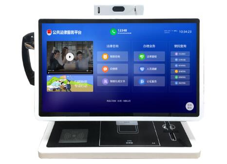 终端具备高拍仪、身份证识别、高清摄像头、电话听筒、手写笔、等多项功能,除能满足日常咨询、信息查询业务外,还可进行视讯咨询,与律师“面对面”沟通,在线上传相关材料,及时沟通获得解答。一台终端放桌面,节约空间,可覆盖到司法所、公共法律服务站等基层,提供打破时间、空间界限的普惠公共法律服务。