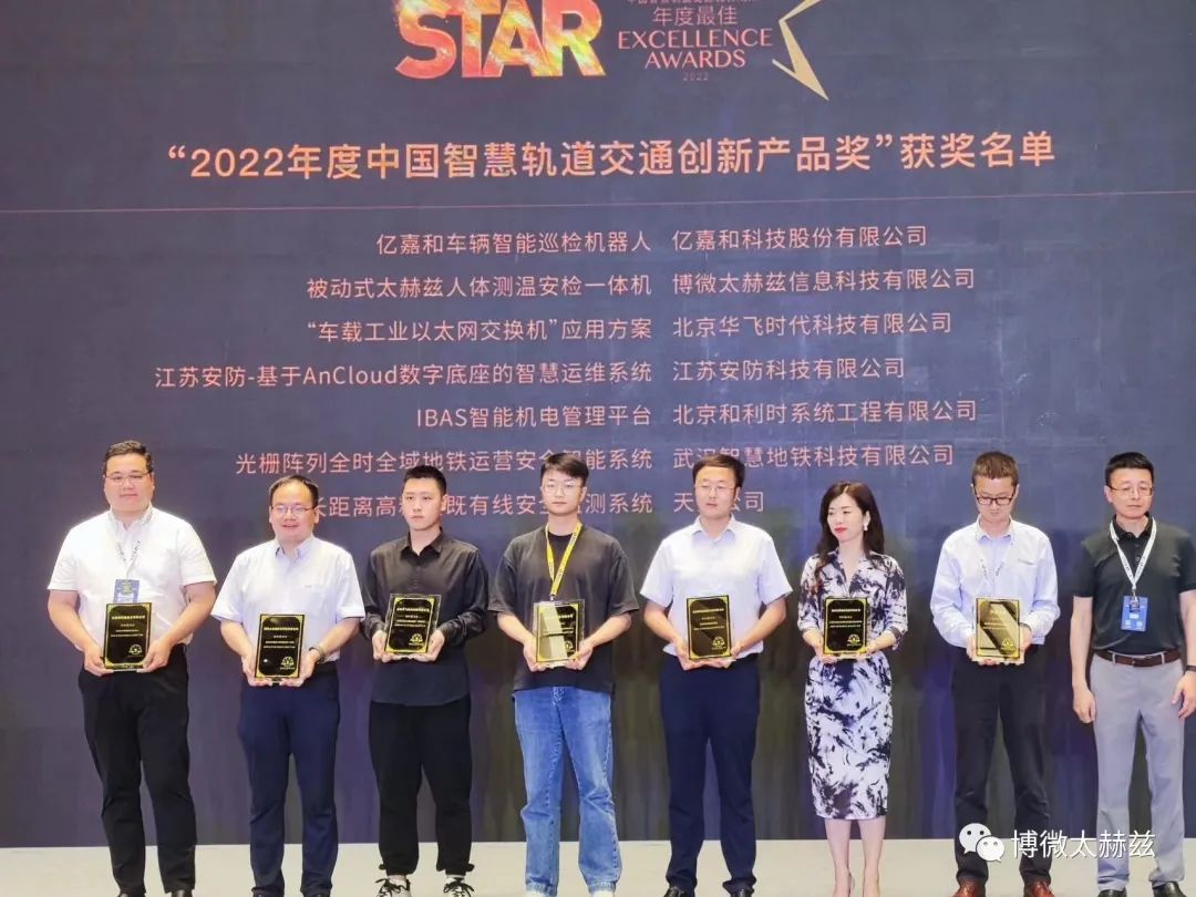 6月12日,在2023年第七届中国智慧轨道交通大会颁奖晚宴上,博微太赫兹公司荣获“2022年度中国智慧轨道交通创新产品奖”。