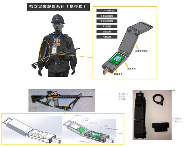 枪带式定位终端,适用于97式防暴枪,拥有高精度卫星定位,双重防拆报警,全天续航等功能。