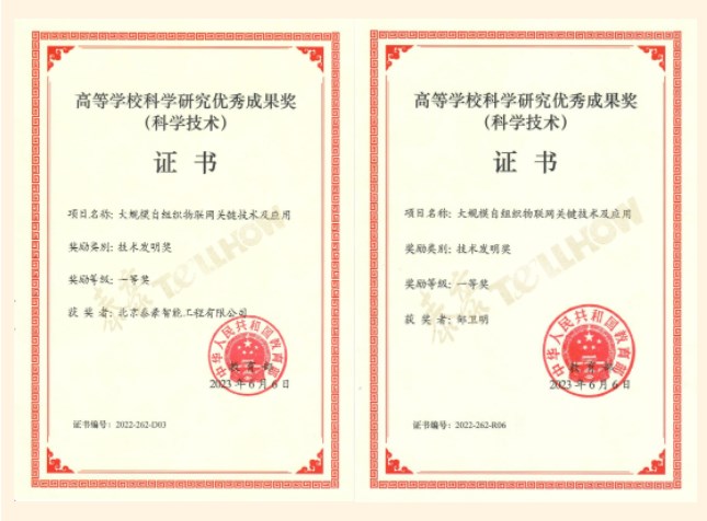 由清华大学联合北京泰豪、儒安物联共同打造的“大规模自组织物联网关键技术及应用”项目,获得由教育部颁发的高等学校科学研究优秀成果奖(科学技术)-技术发明一等奖,公司总裁邹卫明也获此殊荣。