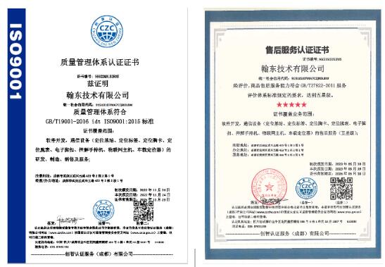 ISO9001证书五星级售后服务证书