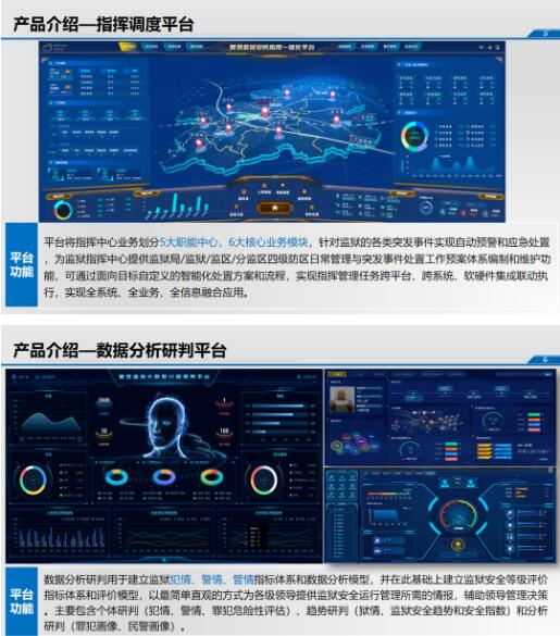 应用:监狱大脑(大数据平台)、智慧安防、智慧指挥、智慧监管、智慧警务、智慧保障、智慧运维、智慧生产、智慧服务。