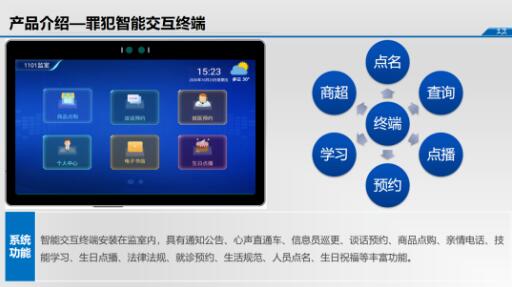 智慧狱务交互终端是专为改进监狱管理和提高罪犯监管而设计的一款全功能一体化智能交互终端,这款交互终端集成了众多实用功能,包括小组信息、狱务公开、谈话预约、就诊预约、个人中心、今日心情、本地商超、技能学习、法律法规、生日点播、亲情电话、商品申领、操作指南等,旨在让罪犯在这段特殊时期的生活更加便捷、有序、充实。浙江省第一监狱首次先行试点部署了130多台智能交互终端,监狱管理者对这款设备给出了高度评价,认为这款产品让监狱管理更加智能化、高效化,同时让罪犯在服刑期间得到更好的关怀和教育。
