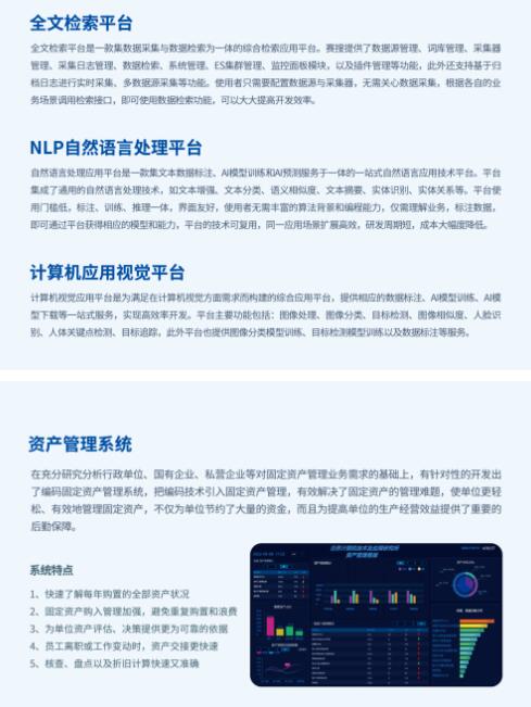 公司拥有近百项的软著,形成了面向多个领域的具有自主知识产权的、安全可信的解决方案,覆涵大数据、人工智能、基础软件、智能终端等,可提供信息化建设咨询规划、应用系统研发、信息系统集成、系统运维等信息化全链条专业服务。