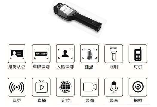 8核4G全网通平台,配置远近光双路照明、高清摄像头、GPS/北斗双定位、公安部标准指纹、二代身份证识别等硬件模块,具备人脸识别、语音识别、声纹识别、手势识别、车牌识别等AI功能。支持实时数据传输、视频直播、语音对讲、轨迹定位,便于后台及时掌握现场情况并调度。