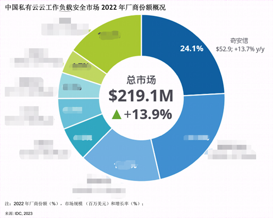 “中国私有云云工作负载安全市场在2022年实现了13.9%的同比增长,市场规模达到2.2亿美元。”近日,全球领先的IT市场研究和咨询公司IDC发布了《中国私有云云工作负载安全市场份额,2022:合规为根基,技术为骨干》(下文简称《报告》),其中奇安信2022年产品体系能覆盖云原生以及混合云环境下的云工作负载安全(CWPP)需求,并在政府、金融、运营商、卫生、能源、制造等多个重要行业取得连续突破,营收达到5290万美元,以24.1%的占有率高居国内市场榜首。这是继去年奇安信获得云工作负载安全市场份额第一之后,在私有云场景下的又一“完美表现”。