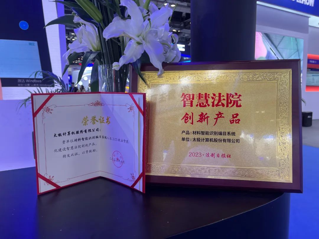 自2018年起,太极股份多项智慧法院产品及方案获评“全国政法智能化建设”优秀创新案例,多次获得国家、省部级相关奖励,并在全国介绍经验,实现应用推广。在此次大会中,太极股份”数智服务一体化平台“入选”智慧法院创新方案“,”材料智能识别编目系统“入选”智慧法院创新产品“。