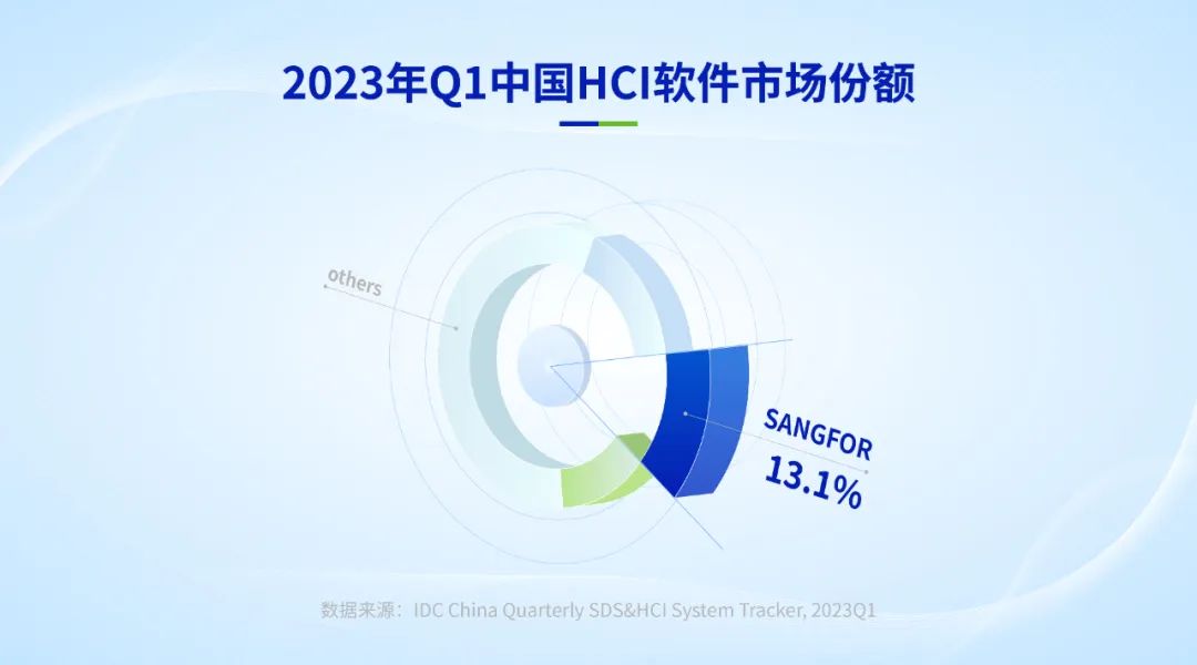 近日,国际数据公司(IDC)发布《中国软件定义存储(SDS)及超融合存储(HCI)系统市场季度跟踪报告,2023Q1》,报告显示——今年第一季度,深信服超融合以13.1%的市场占有率位列全国第二!