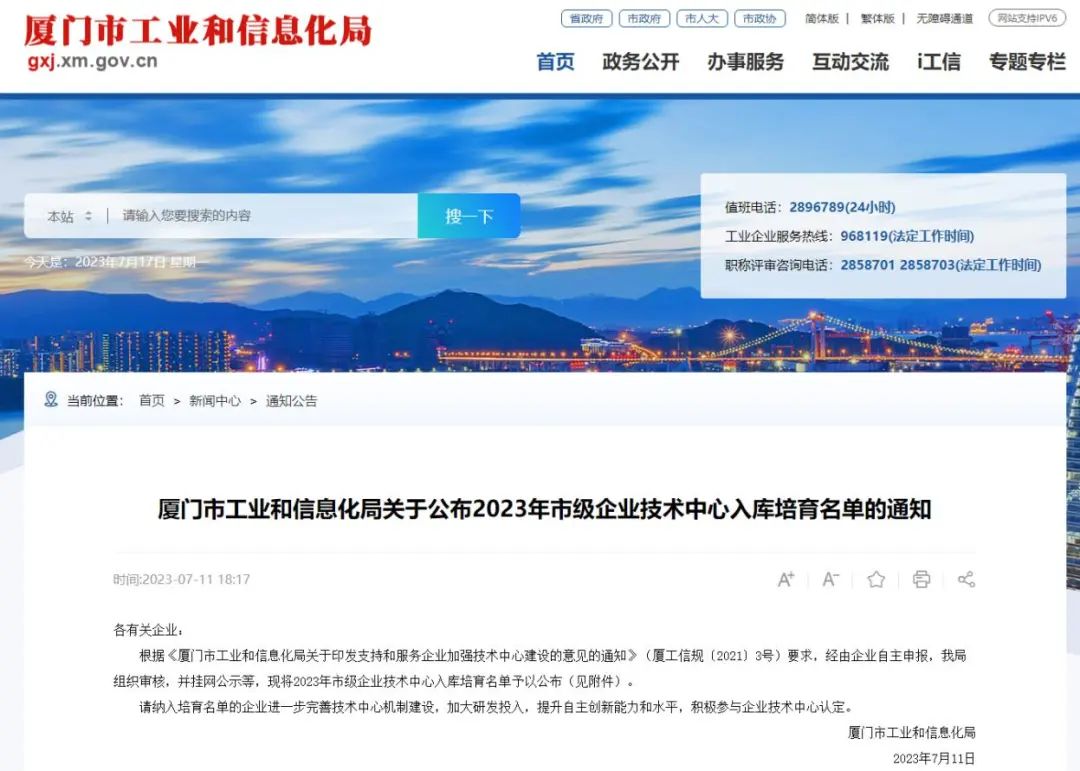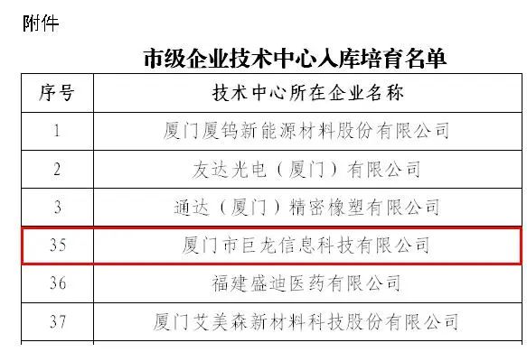 近日,厦门市工业和信息化局公布2023年市级企业技术中心入库培育名单。经过层层筛选,巨龙信息脱颖而出入选“市级企业技术中心入库培育名单”。