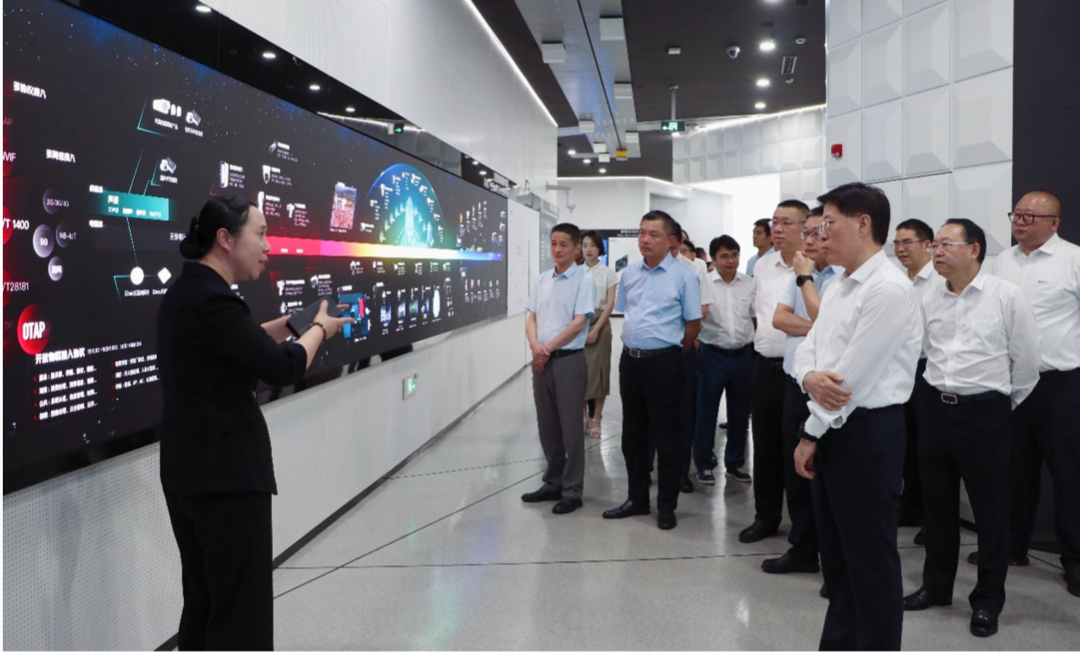 在调研过程中,江敦涛一行详细了解海康威视的发展历程、产品体系和技术能力,并着重听取了海康威视在数字政府建设、应急管理、产业数字化转型等领域解决方案及应用案例的汇报。