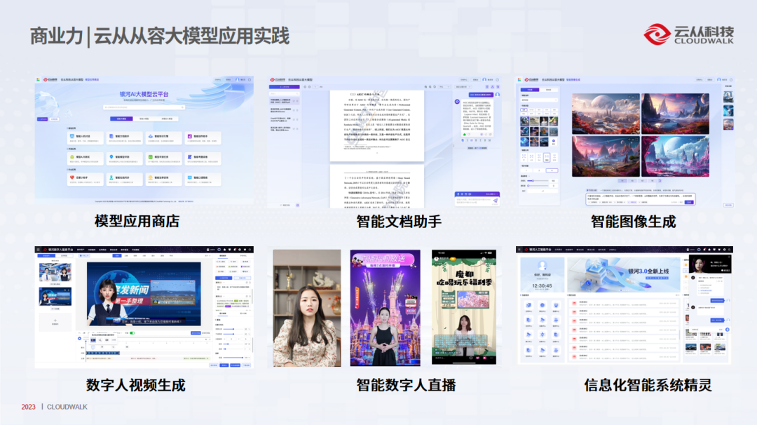 通过多年技术积累和业务深耕,云从科技已经在智慧金融、智慧治理、智慧出行、智慧商业、智慧城市、AIGC等领域已逐步实现成熟落地应用。