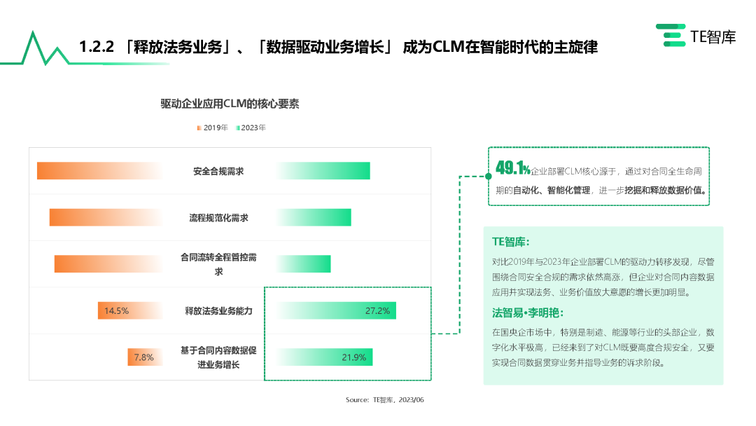 近日,亿欧智库与行业知名产研平台TE智库发布《中国CLM(合同全生命周期管理)市场产业全景研究报告》,该报告旨在探讨和明晰中国CLM(合同全生命周期管理)行业的现状和潜力、未来趋势以及行业中的优秀代表,推动中国合同管理数字化不断向前发展,并赋能企业。