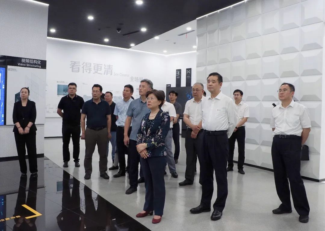 代表团一行参观了海康威视展示中心,听取海康威视在智能物联领域的技术成果介绍,详细了解海康威视的技术产品在城市数字化、产业数字化和水利数字化领域的应用。