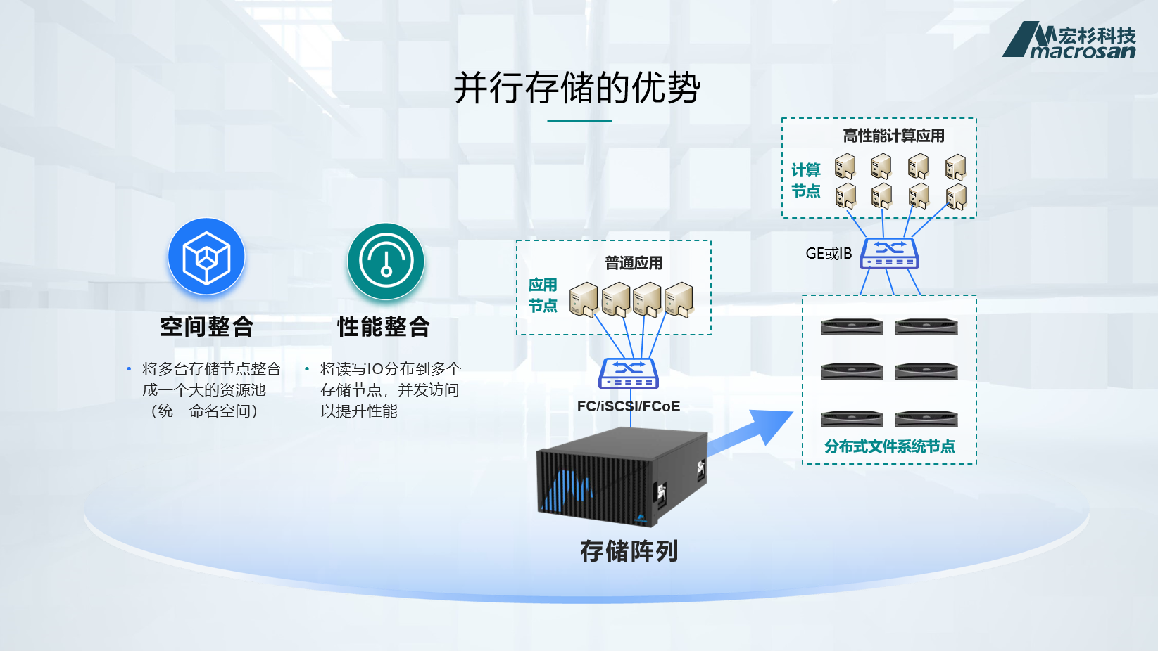 万象拥有并行存储客户端,能够将创新中心的存储空间、性能进行双重整合。青田创新赋能中心的55个万象存储节点被统一整合为一个大资源池,将读写IO分布到多个存储节点,并发访问以提升整体存储性能。