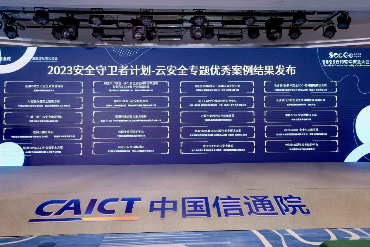 2023年8月25日,由中国信息通信研究院(以下简称“中国信通院”)主办的2023云和软件安全大会在京召开。大会旨在进一步推动《面向云计算的安全运营中心能力要求》等相关云计算安全标准的应用实施,提升行业整体安全运营能力,并通过宣传推广一批成熟度高、具有示范作用的优秀案例,以促进云安全行业的发展。