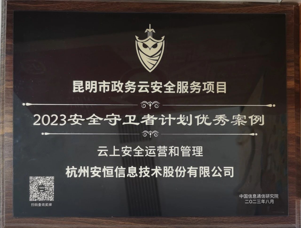 会上,安恒信息提报的“昆明市政务云安全服务项目”、天翼云科技有限公司云南分公司提报的“天翼云科技有限公司云南分公司‘一城一池’云安全能力建设项目”、芜湖市数据资源管理局提报的“芜湖市政务云租户安全资源池项目”荣获“2023安全守卫者计划优秀案例”。