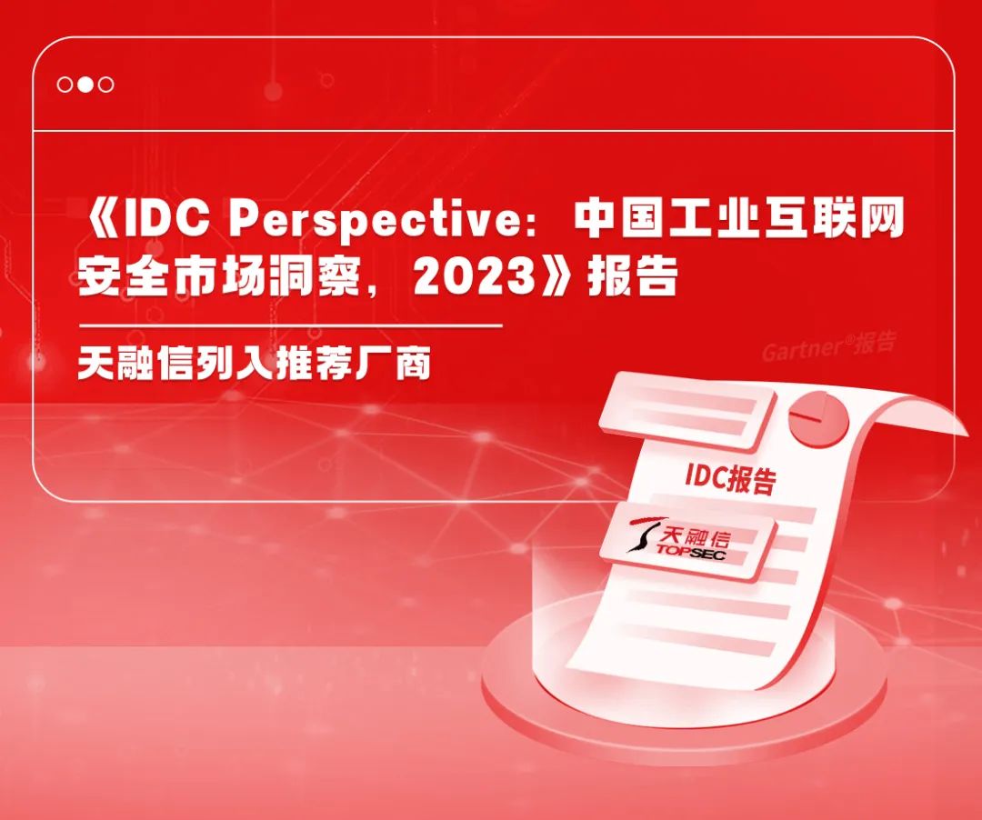 近日,IDC正式发布《IDC Perspective:中国工业互联网安全市场洞察,2023》报告(下称《报告》)。天融信凭借在工业互联网安全领域深厚的技术能力与实践积累,入编《报告》并成为IDC推荐厂商。
