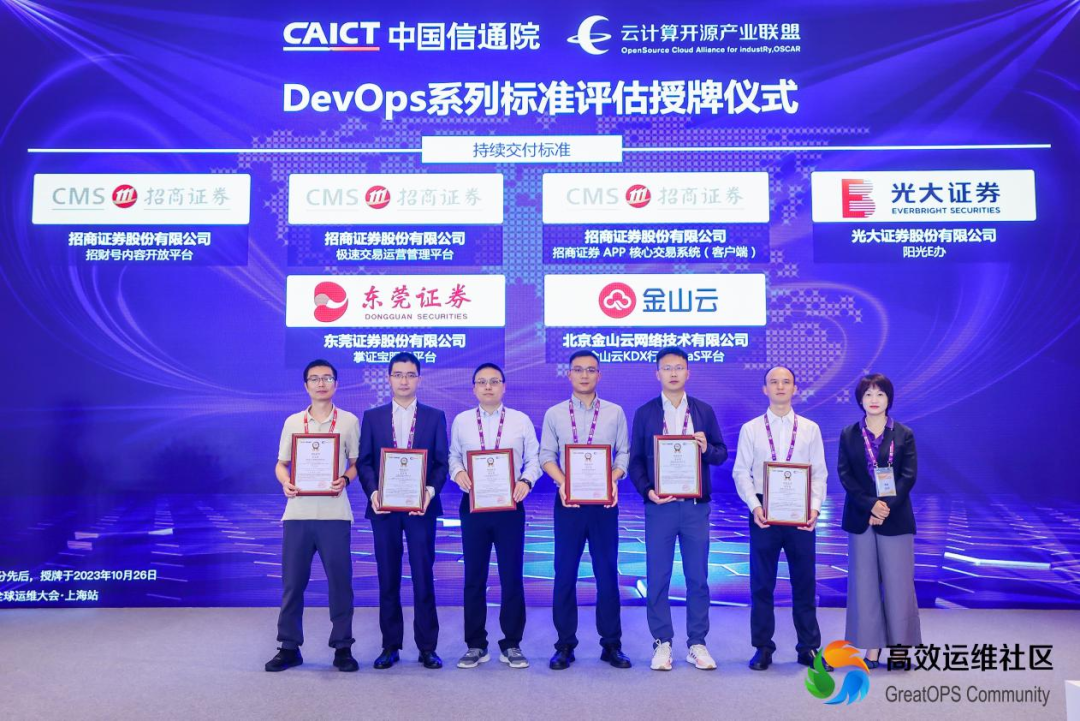 10月26日,在第二十一届 GOPS 全球运维大会2023上海站,金山云顺利通过中国信息通信研究院(以下简称“信通院”)《研发运营一体化( DevOps )能力成熟度模型第3部分:持续交付》三级能力成熟度评估,展现出公司DevOps相关能力已达国内先进水平。