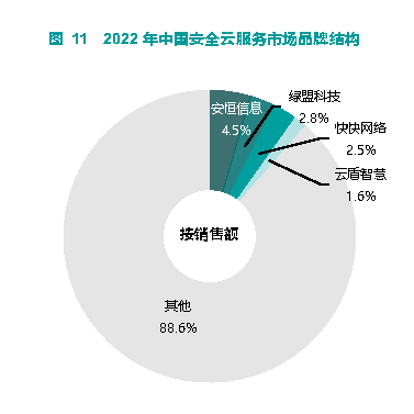 安恒信息作为中国云安全领先厂商之一,依然保持前沿竞争力,以4.5%的市场份额位列2022年中国安全云服务市场份额占比第一。