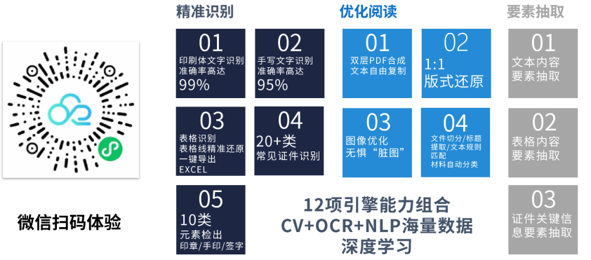 云图OCR智能识别:汉王影研云图OCR智能识别技术,是利用图文识别分析领域突破性技术,结合法院业务特点,为电子卷宗深度利用量身打造的专业化识别分析产品,通过高准确率、高效率的图文识别分析,为电子卷宗深度应用提供强大的能力支撑及优质的数据保障。