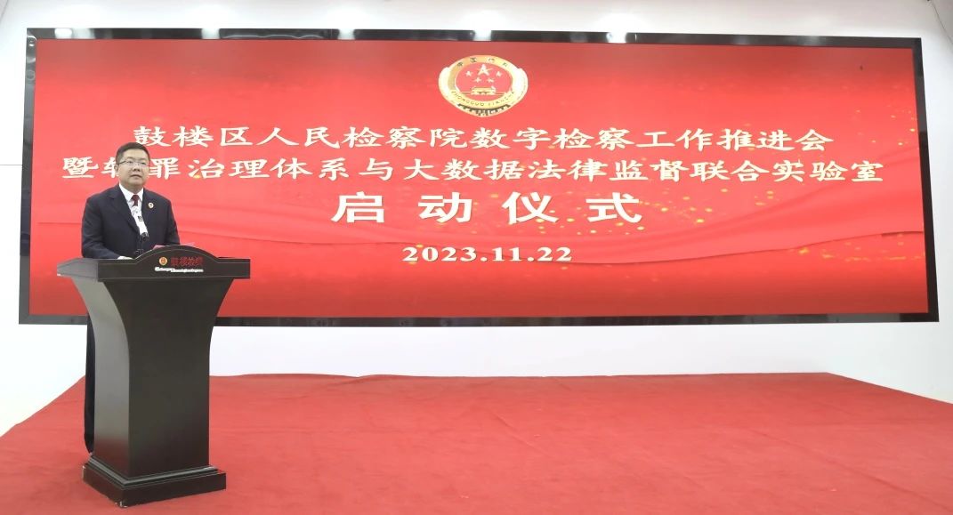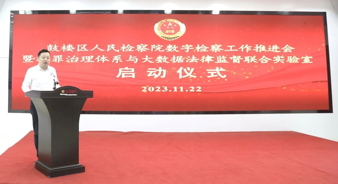 为加快推进数字检察工作探索步伐,更好地助力检察工作高质量发展和现代化建设,11月22日,鼓楼区检察院召开数字检察工作推进会暨轻罪治理体系与大数据法律监督联合实验室启动仪式。鼓楼区检察院党组书记、代检察长张春,北京天轴科技有限公司董事长张弛,省检察院第一检察部四级高级检察官陈文斌,市检察院检察技术信息部主任黄殷颖、第一检察部副主任林应辉、检察技术信息部副主任陈建和,区院领导谢晶、林峰及各部门负责人、刑检部门检察官等40余人参加活动。