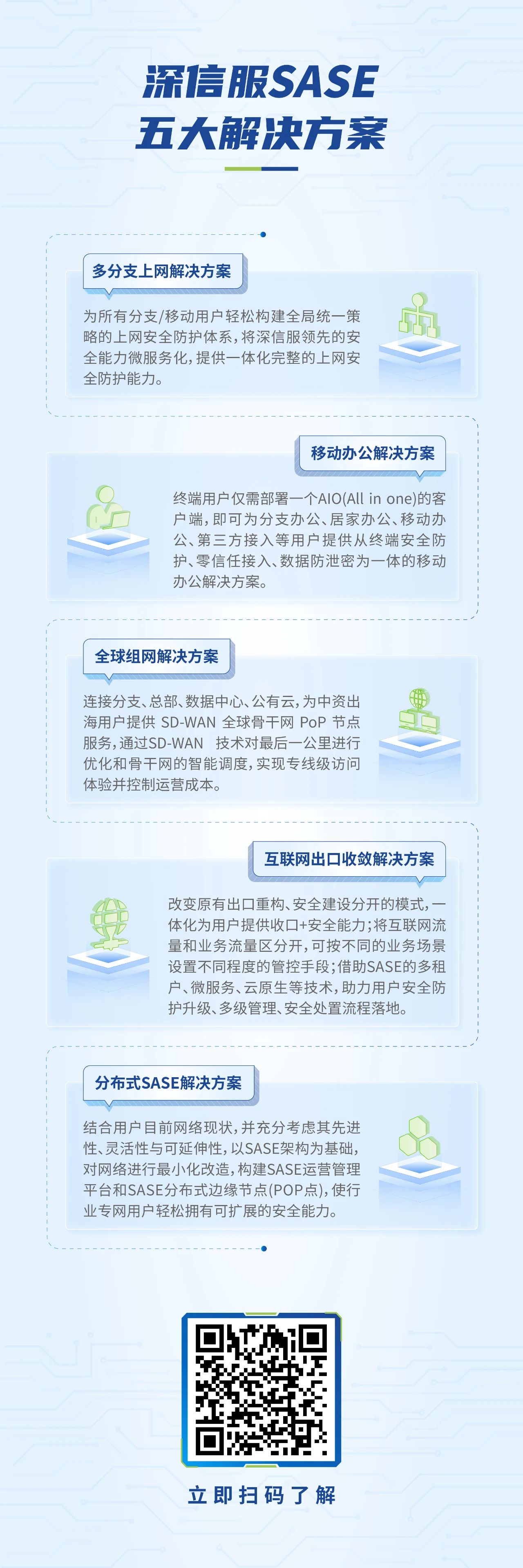 除此之外,基于SASE的核心能力与价值,深信服打造了SASE不同场景的五大解决方案,充分满足用户的各种需求——