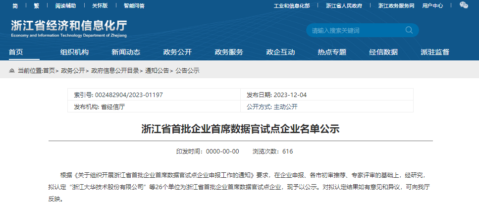 大数据时代,数据作为一种战略资产,已经成为驱动经济社会发展的基础性要素。12月4日,浙江省经济和信息化厅对浙江省首批企业首席数据官试点企业单位名单进行公示,银江技术成功被认定为浙江省首批试点企业!充分发挥数据要素在数字经济发展中的重要驱动作用。