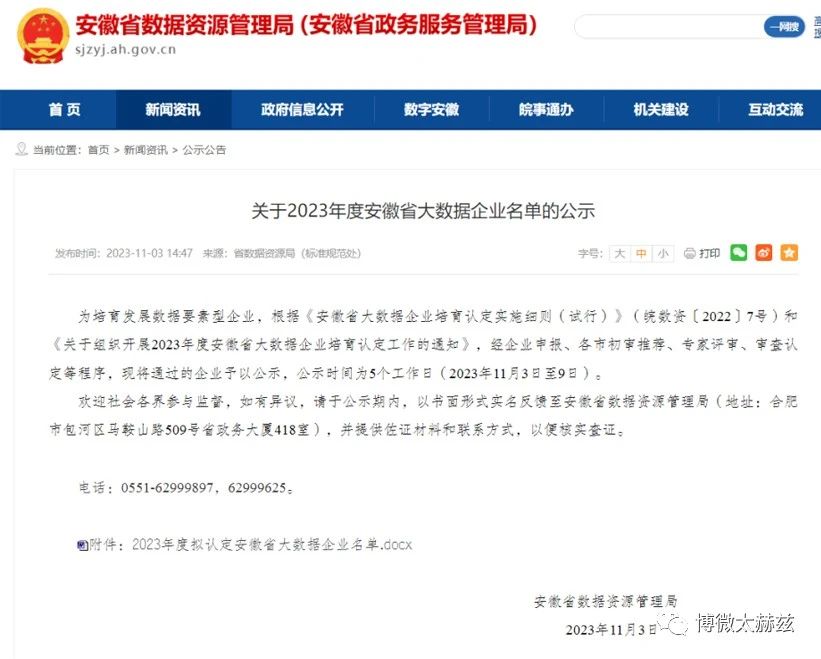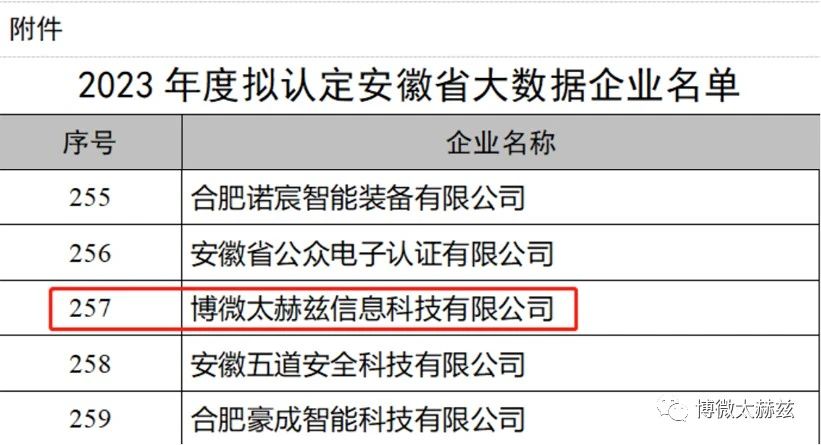 近日,安徽省数据资源管理局公布了2023年度安徽省大数据企业名单,博微太赫兹公司成功入选。