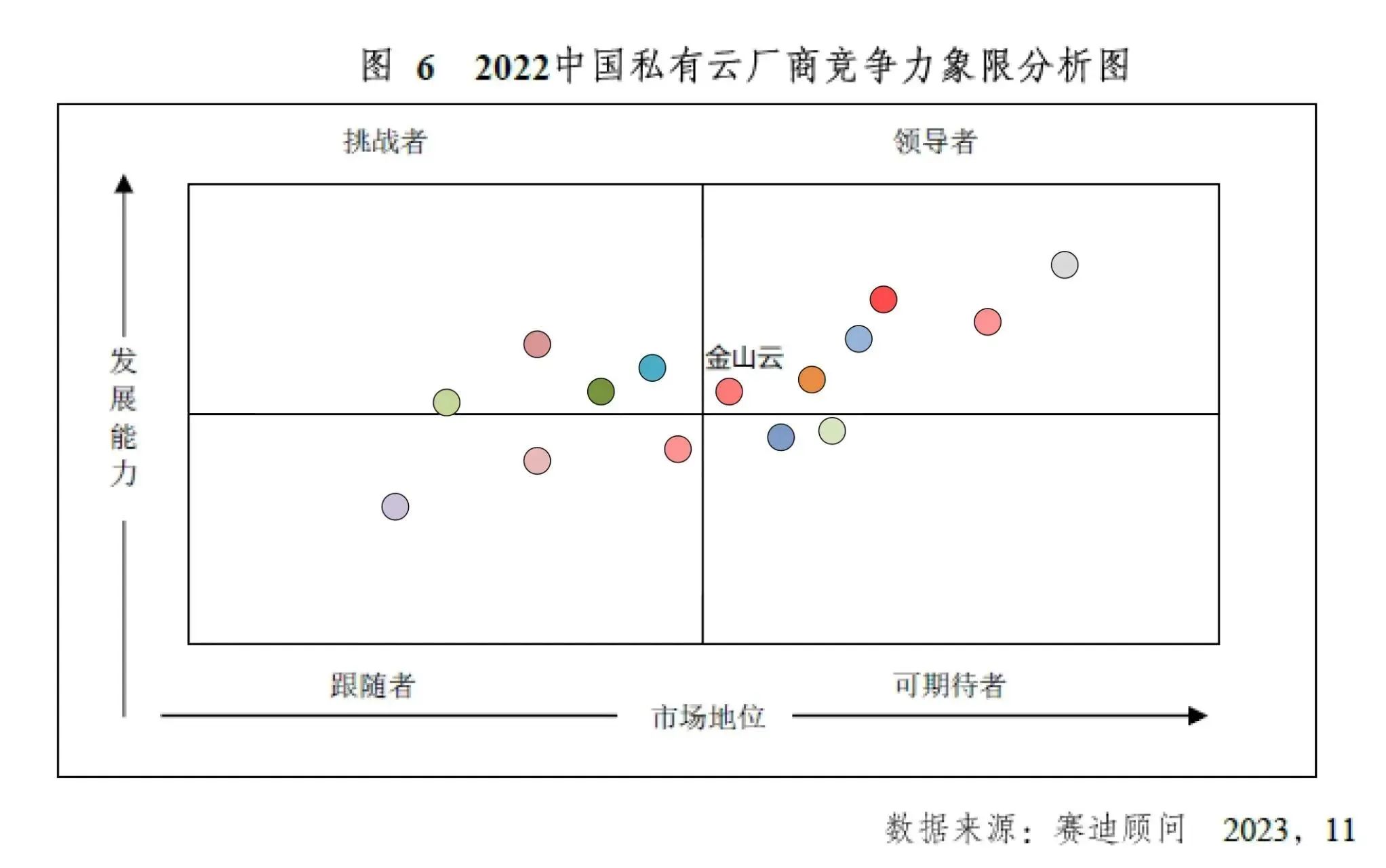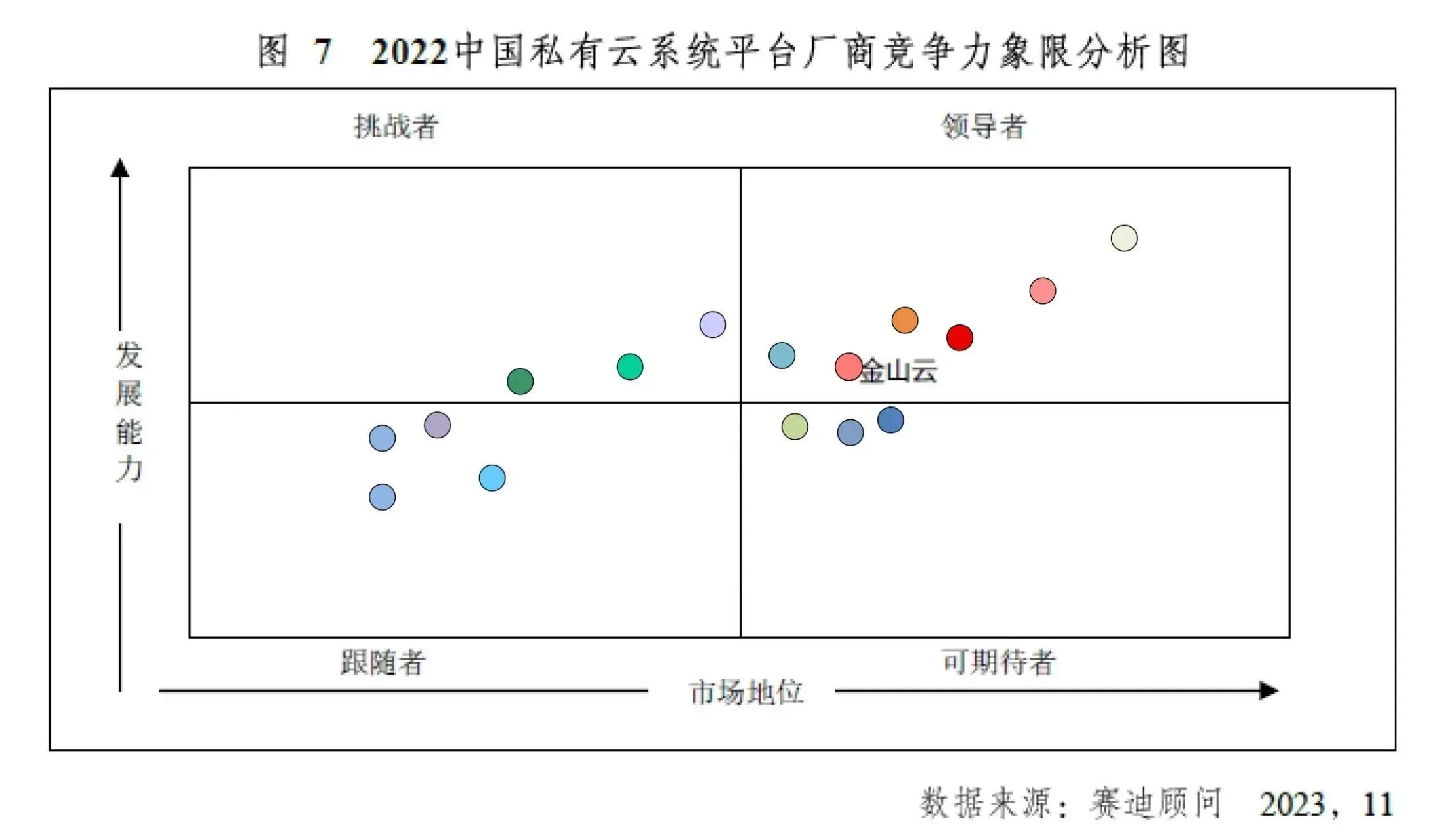近日,国内权威机构赛迪顾问发布《2023中国私有云市场研究报告》(以下简称《报告》)。凭借不断提升的产品能力与服务能力,金山云银河平台在该报告的评比中取得重大突破,成功入围中国私有云市场领导者象限和中国私有云系统平台市场领导者象限,双项领跑。