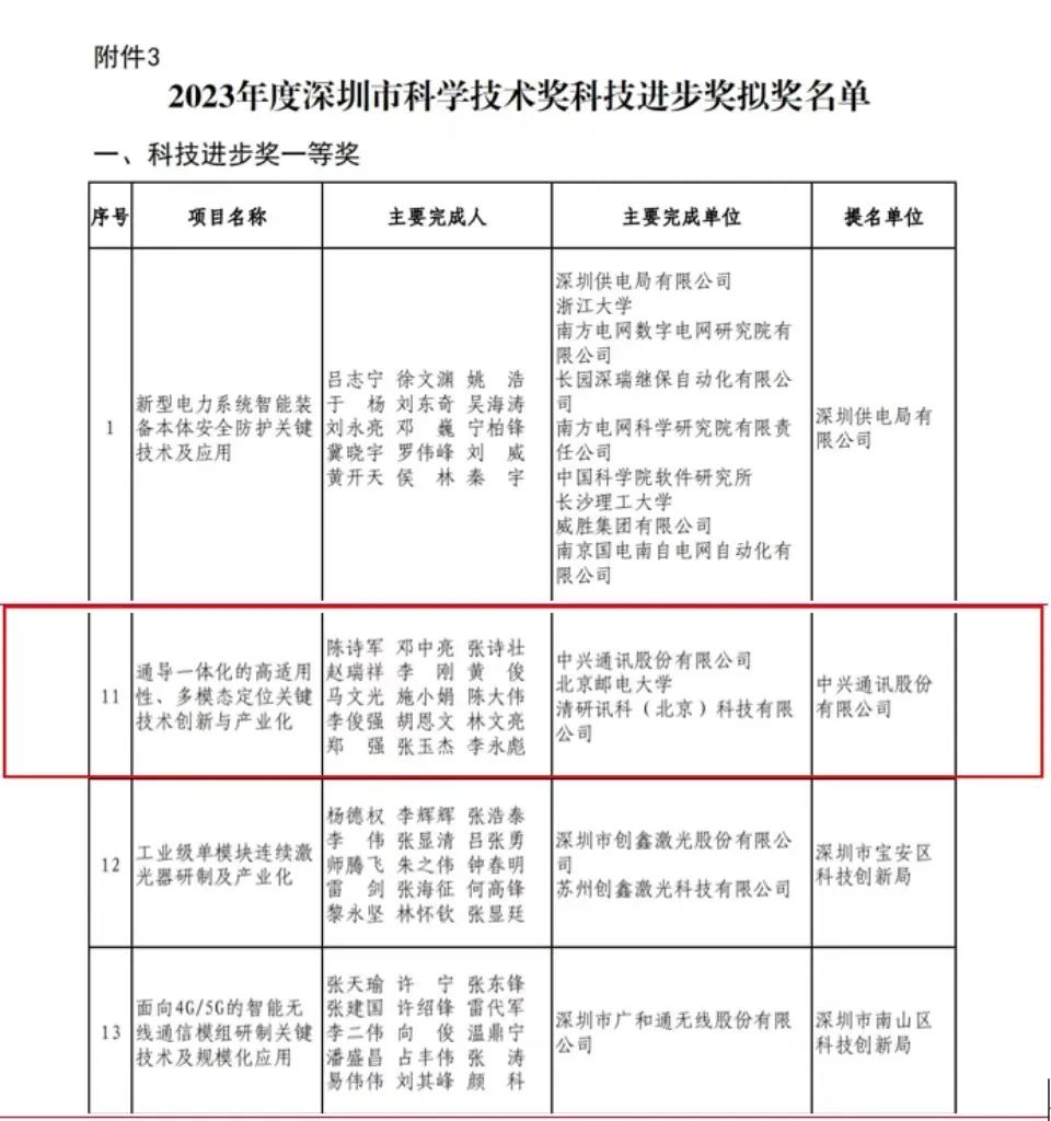 近日,深圳市科学技术奖励委员公布了2023年度深圳市科学技术奖获奖名单,由清研讯科(北京)科技有限公司、中兴通讯股份有限公司、北京邮电大学共同完成的项目《通导一体化的高适用性、多模态定位关键技术创新与产业化》荣获“2023年度深圳市科学技术奖科技进步奖一等奖”。
