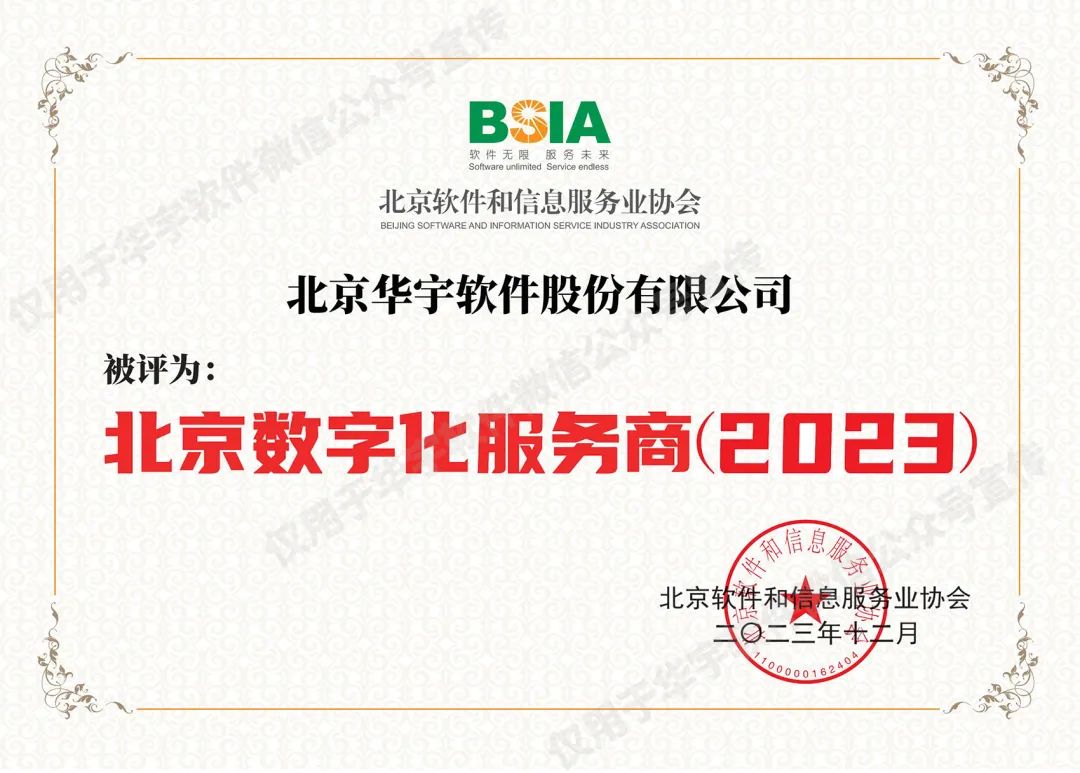 为深入推进数字产业化和产业数字化发展,全力建设全球数字经济标杆城市,更好服务北京数字化转型,在北京市数字经济促进中心的指导下,北京软件和信息服务业协会组织遴选了一批数字化服务商和创新解决方案,华宇成功入选。