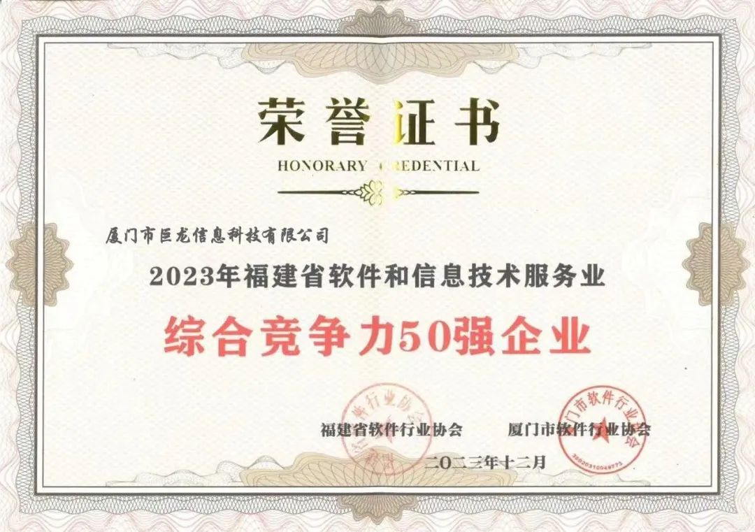 近日,福建省软件行业协会和厦门市软件行业协会发布了“2023年福建省软件和信息技术服务业综合竞争力50强企业”名单,巨龙信息凭借卓越实力再次上榜。