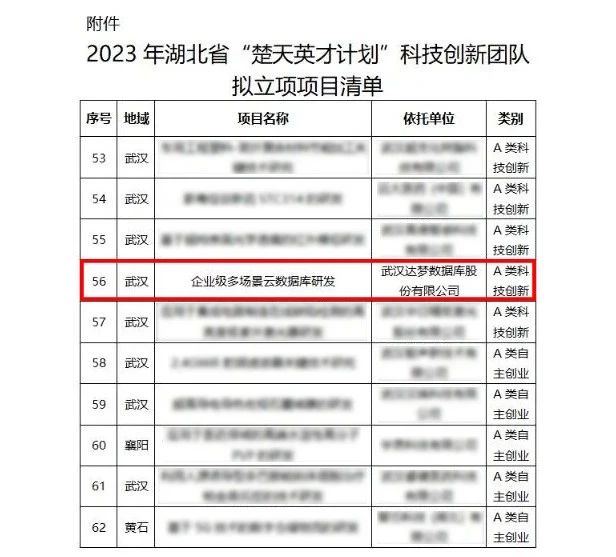 近日,由湖北省委组织部、省科技厅主办的 2023 湖北“楚天英才计划”科技创新团队创新创业大赛收官。达梦公司报送的“企业级多场景云数据库研发”项目,经过现场激烈角逐,顺利通过湖北省“楚天英才计划”科技创新团队项目立项,并获得湖北省“楚天英才计划”科技创新团队A类荣誉。