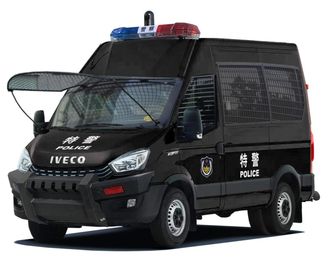 森源鸿马多功能运兵车择优选择依维柯欧胜底盘,车辆外观强悍、霸气十足。具备防暴、装备运输和运兵功能,配备防暴网,装配防撞梁和防撞保险杠,具备突出的防撞防突能力。车顶安装警示灯具、监控等,根据实际需要可选升降照明摄像、通信指挥系统等;车身图案可根据要求喷涂定制。