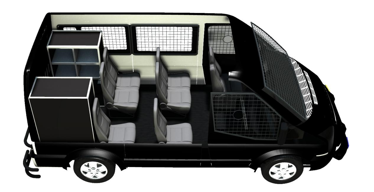 多功能运兵车实现以车代库、动中备勤,便于快速响应;可定制装备柜,装备可自行调节,满足不同尺寸装备放置需求,通过调整盾牌和枪械的摆放,最大限度的利用车内空间。