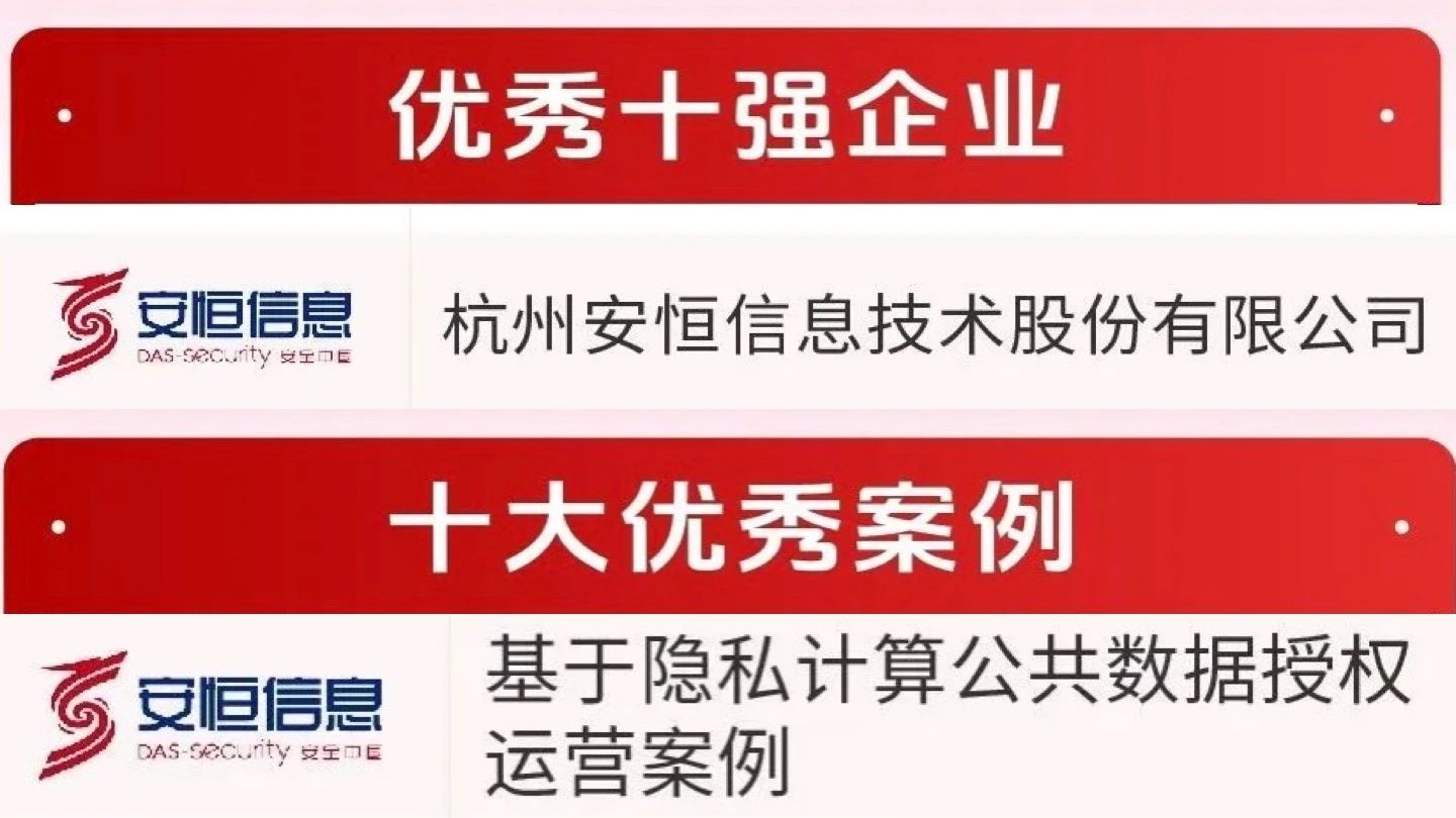 为挖掘网络安全行业优秀企业、案例与产品,充分发挥优秀网安企业各自的优势,营造共建、共享、共赢的新生态,等级保护测评于近日组织了2023年网络安全优秀评选活动。安恒信息携“基于隐私计算公共数据授权运营案例”积极参选,荣获“2023年网络安全优秀十强企业”和“2023年网络安全十大优秀案例”两项荣誉。