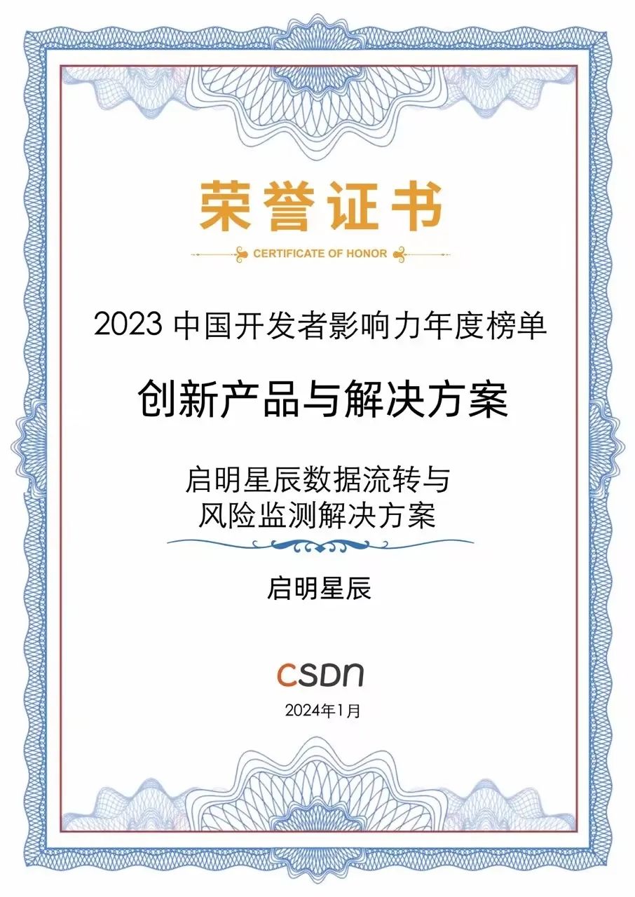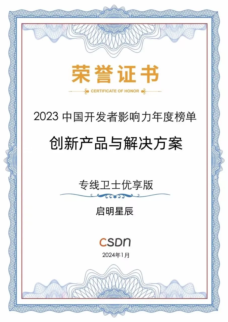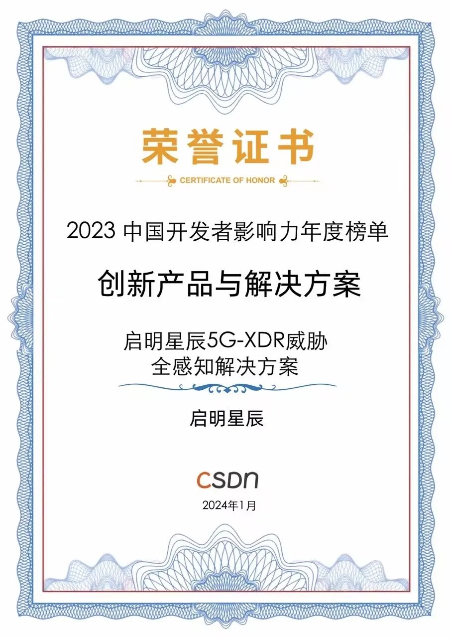 近日,“CSDN2023中国开发者影响力年度榜单”正式发布。启明星辰数据流转与风险监测解决方案、启明星辰5G-XDR威胁全感知解决方案、专线卫士优享版齐获“年度创新产品与解决方案”三项大奖。